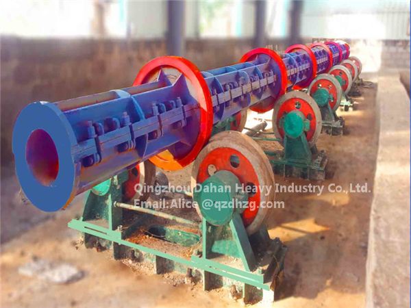 1 Adding the slurry into the steel mold for concrete pole, it is driven quickly and rotating at the same speed of the machine. Each component is separated and released under the centrifugal force. Usually the higher the slurry rotate speed, the better the slurry separating effect.